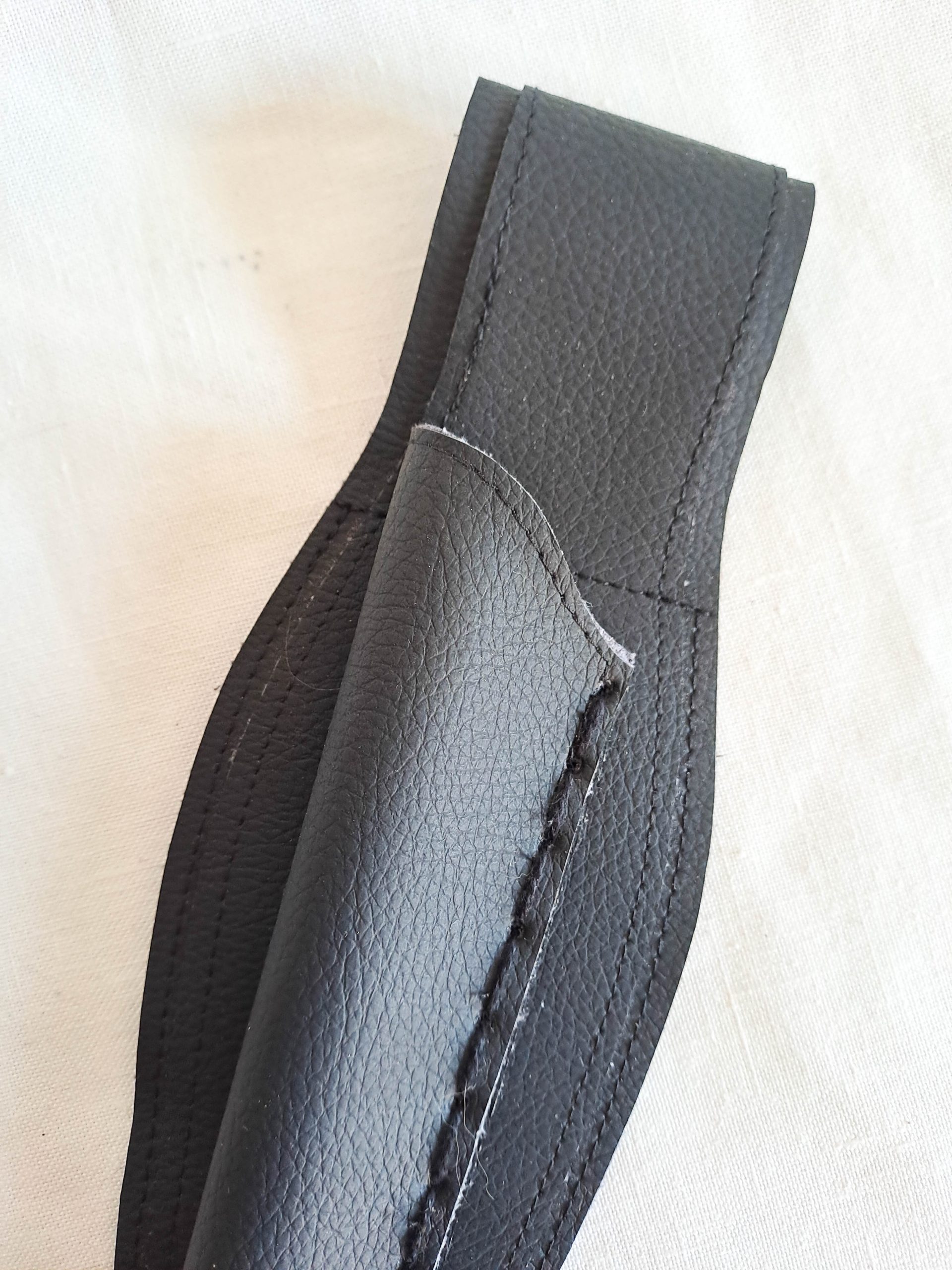 Made from vegan leather and soft coloured vinyl. Will comfortably carry wands between 30 and 40 cm.