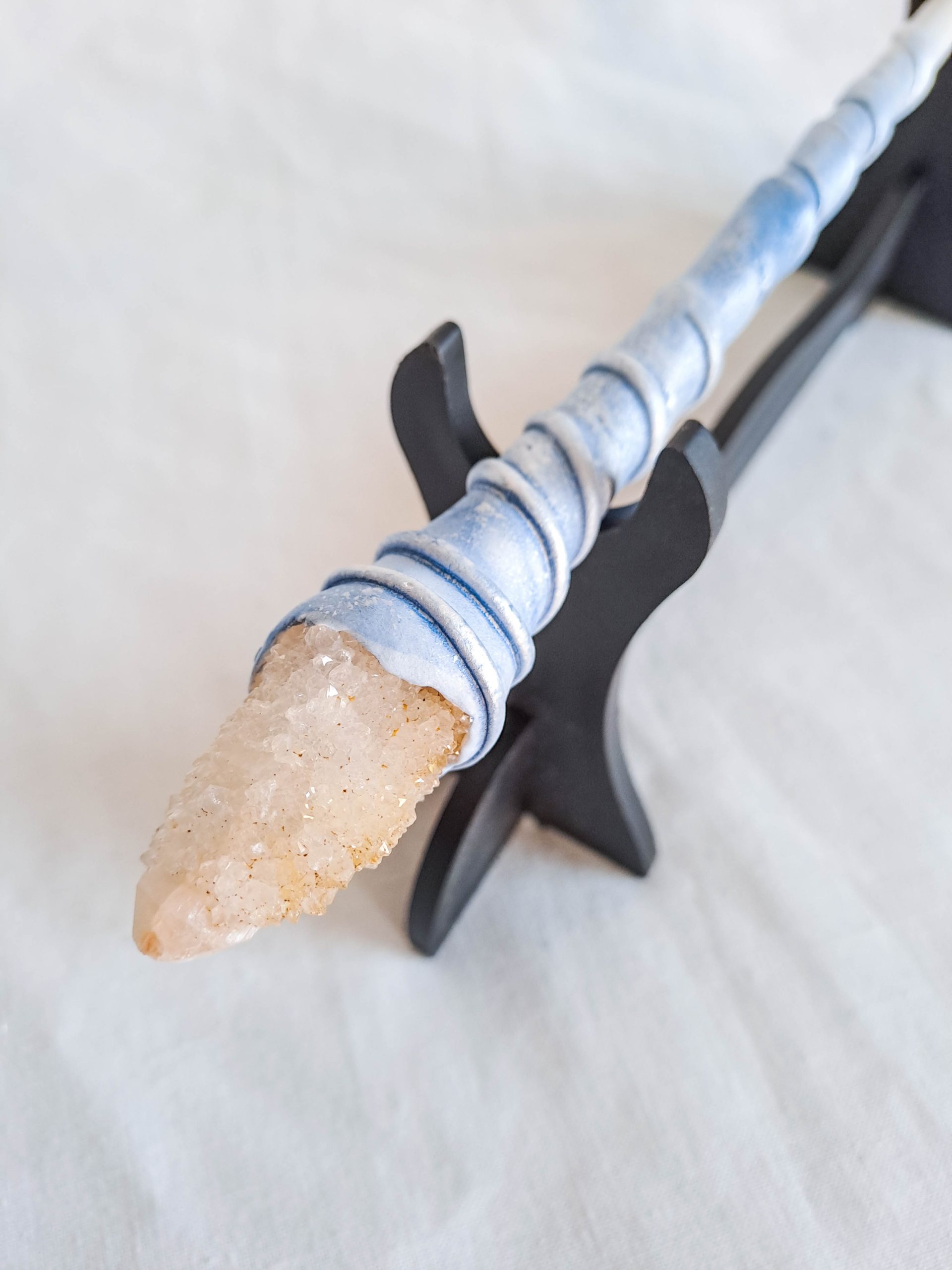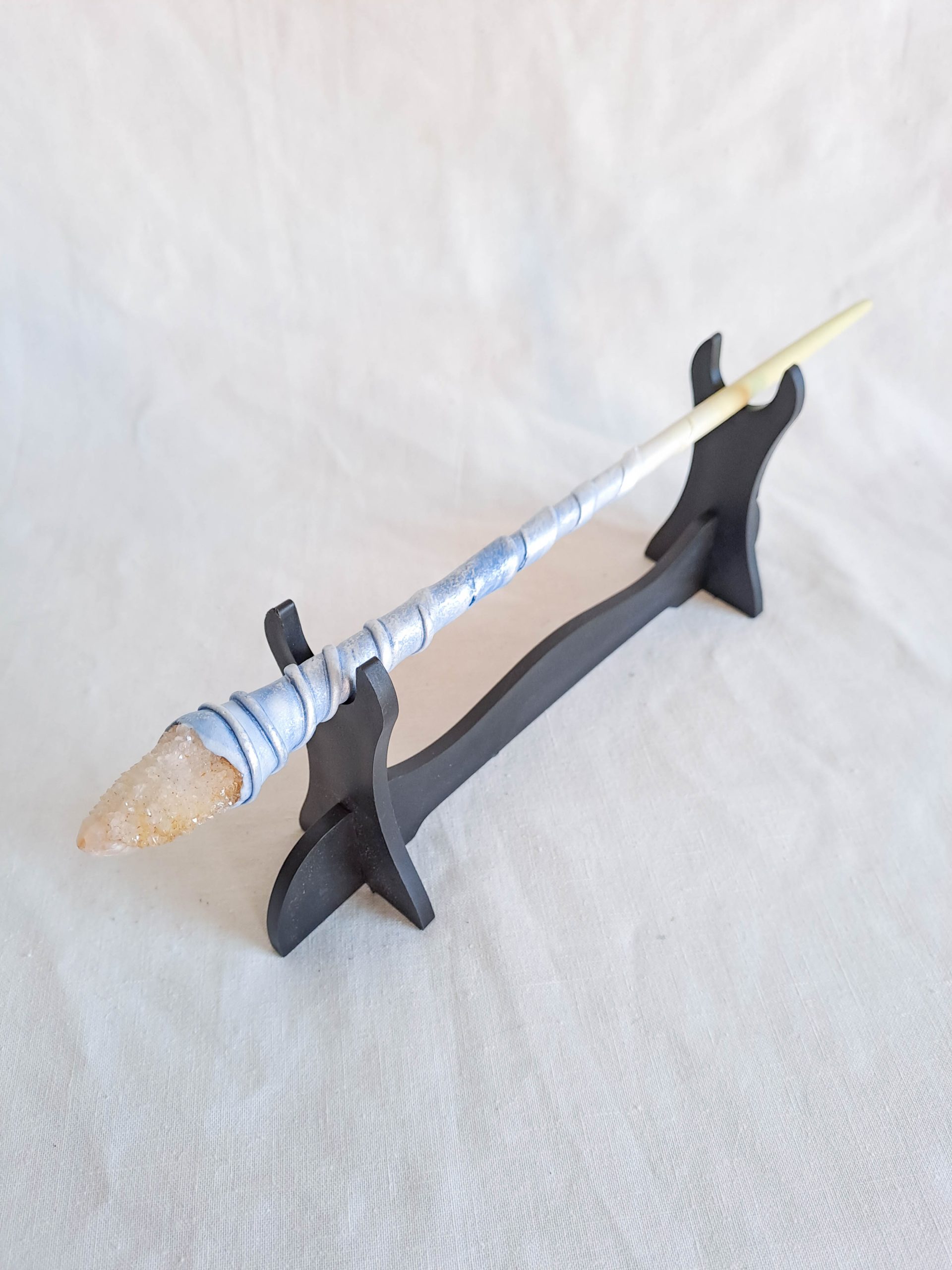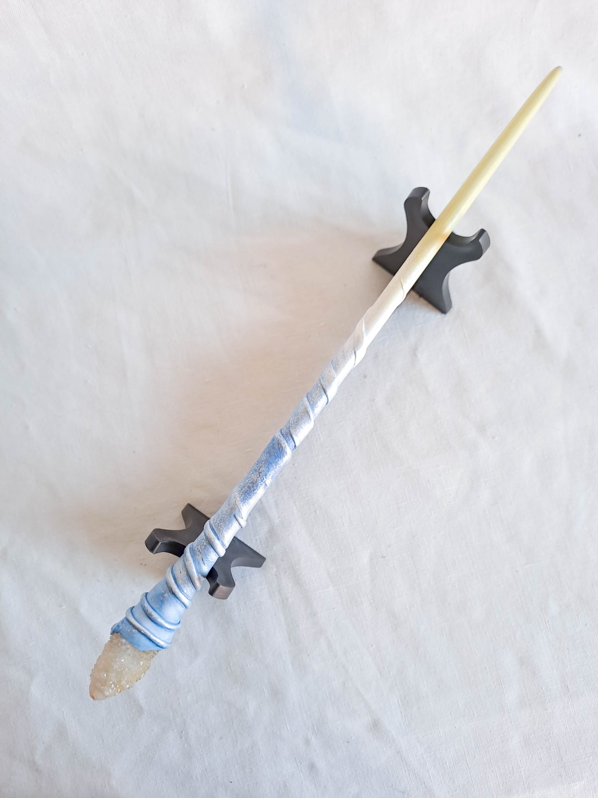 Each wand has a wooden base and the handle designs are made from special foam clay for an easy lightweight wield.