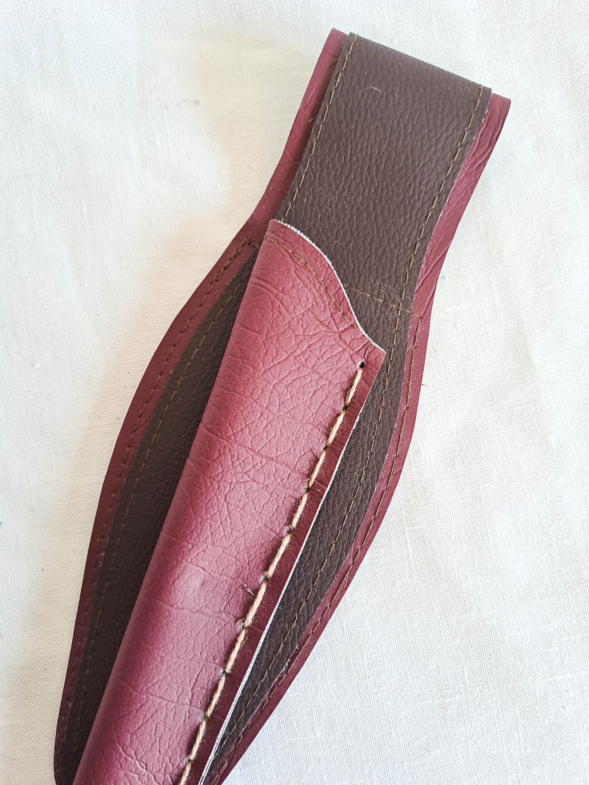 Made from vegan leather and soft coloured vinyl. Will comfortably carry wands between 30 and 40 cm.