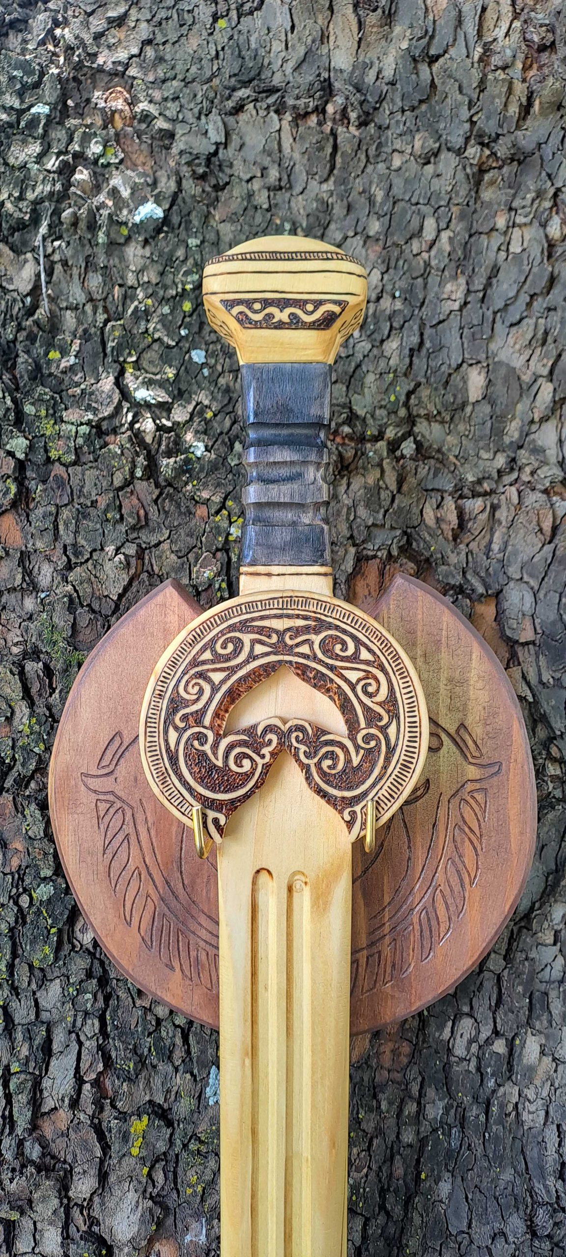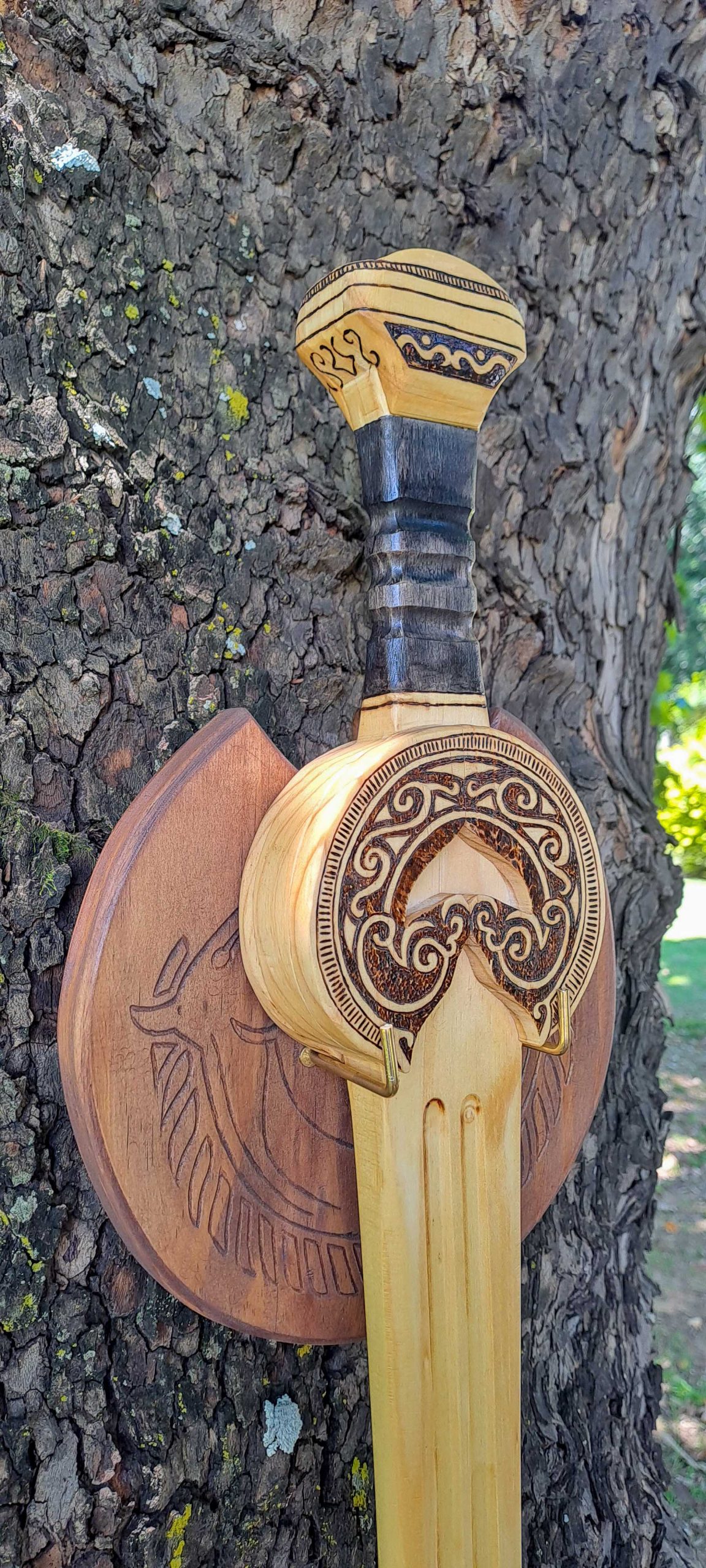 Differences in the colouring and patterning of the wood will occur as each piece of wood is unique. Therefore, no two weapons of the same type will be precisely the same.